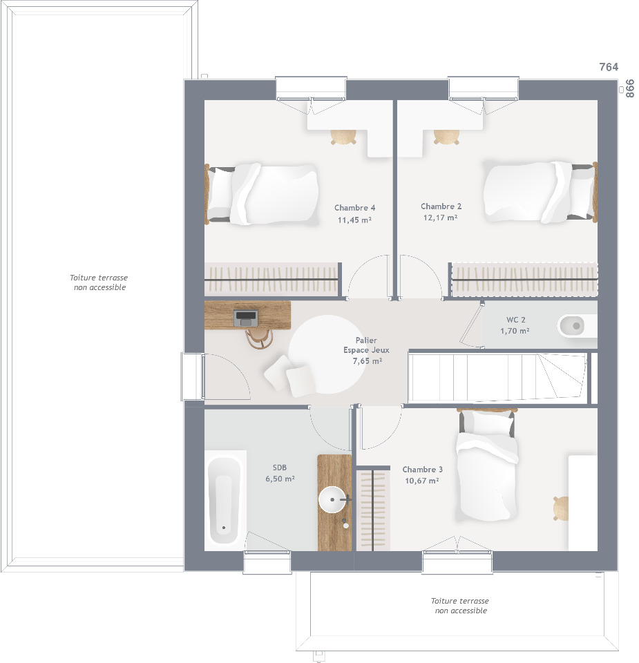 Cette maison comporte 2 niveaux. Elle est neuve.