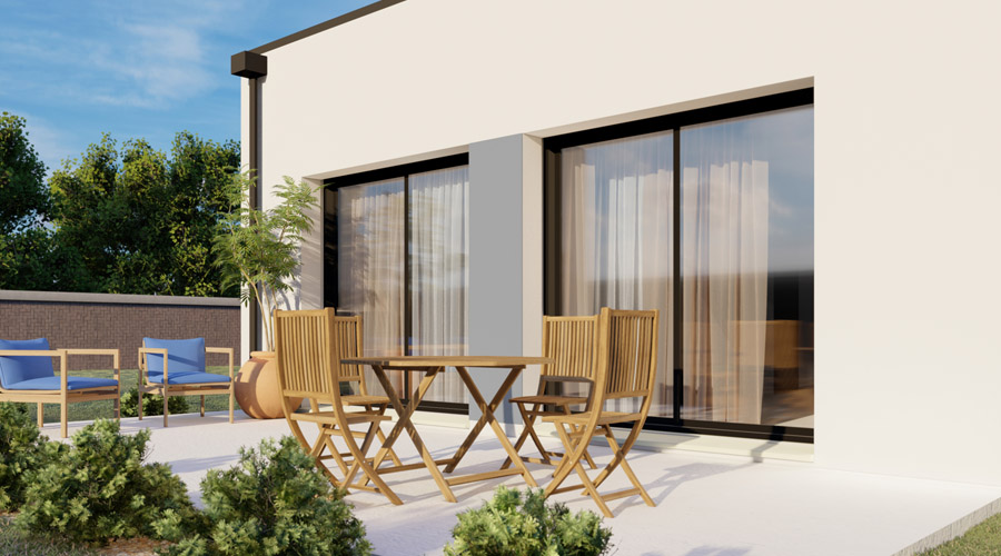 Tous les modèles de la gamme Contemporaine sont pourvus de matériaux et d’équipements haut de gamme. Les menuiseries extérieures, tout comme les volets roulants, les gouttières et descentes d’eaux pluviales sont en aluminium. L’isolation est réalisée avec un matériau alvéolaire de nouvelle génération, 100% recyclable. Les façades sont habillées d’un enduit gratté d’un aspect fin et sobre et peuvent être agrémentées en option d’un parement imitation pierre, brique…
