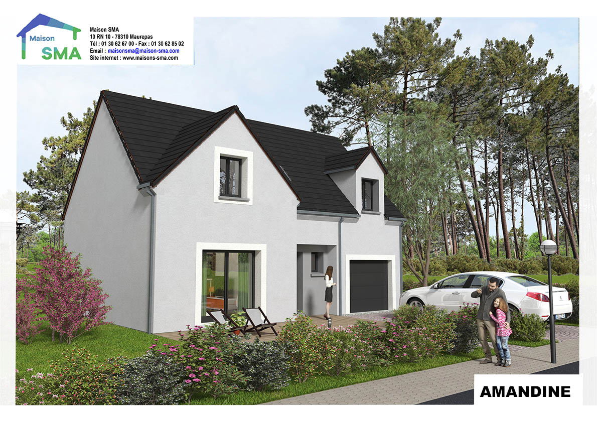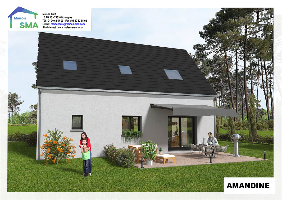Notre modèle AMANDINE fait partie de la famille des modèles en « L ». Vous l’aimerez pour ses grands especes et sa surface optimisée sans perte de place et avec un design moderne et actuel. Il vous est proposé avec une cuisine ouverte sur séjour. Le cellier, proche de la cuisine recevera technique et provisions. Le garage intégré communique directement avec le cellier et peut etre transformé en chambre.