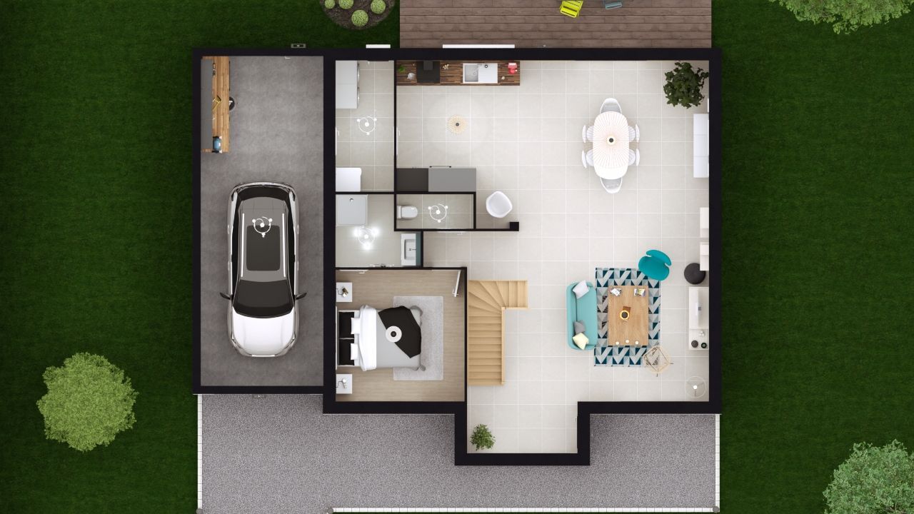 Surface vitrée exceptionnelle, originalité de sa toiture à pentes multiples, 150 m2 habitables, 5 chambres et garage, cette maison a plus d’un atout pour séduire les amateurs de beaux espaces. Notez le garage prévu pour 2 voitures, pourvu à la fois d’un accès cellier et d’un accès direct au jardin. Les coffres de volets électriques sont, bien-sûr, comme sur toutes nos maisons, invisibles. Ils sont program- mables grâce au pack domotique TaHoma qui est inclus de base sur tous nos modèles Premium. Nous tenons notre promesse Énergie positive même en cas d’exposition Défavorable !