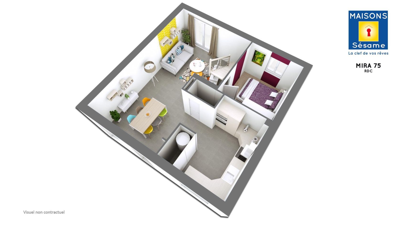 Le modèle MIRA 75 est une maison à combles aménagés de 73 m², idéale pour les familles recherchant un espace de vie fonctionnel et bien agencé. Ce modèle comprend six pièces, dont trois chambres, et est conçu pour maximiser chaque mètre carré afin d’offrir un confort optimal.