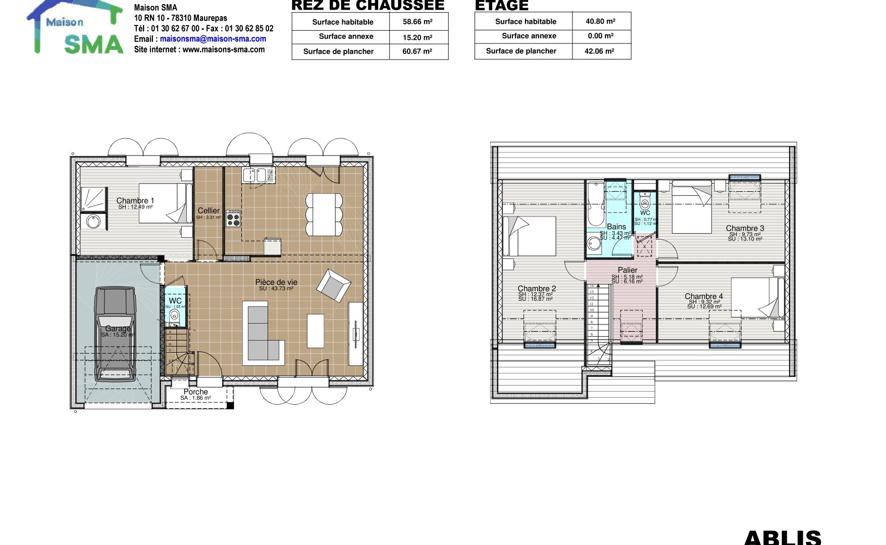 Très fonctionnel avec son garage incorporé, notre modèle ABLIS est particulierment adapté aux terrains offrant une petite façade.