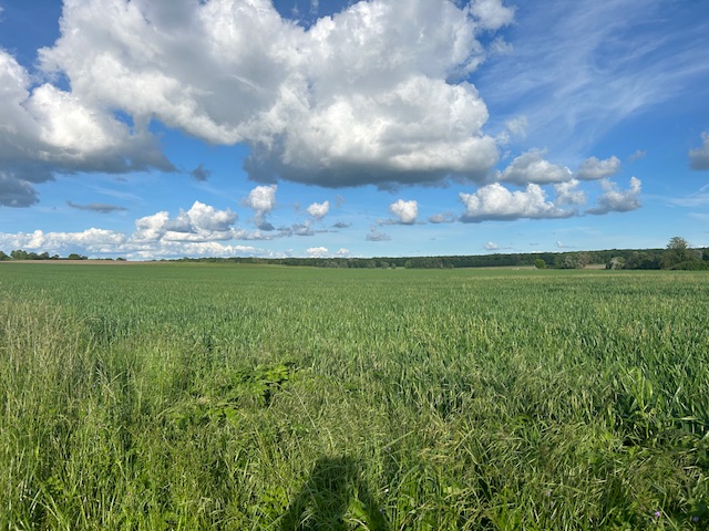 Joli terrain plat de 820 M², viabilisé vue sur les champs constructible au fond d’ une impasse.