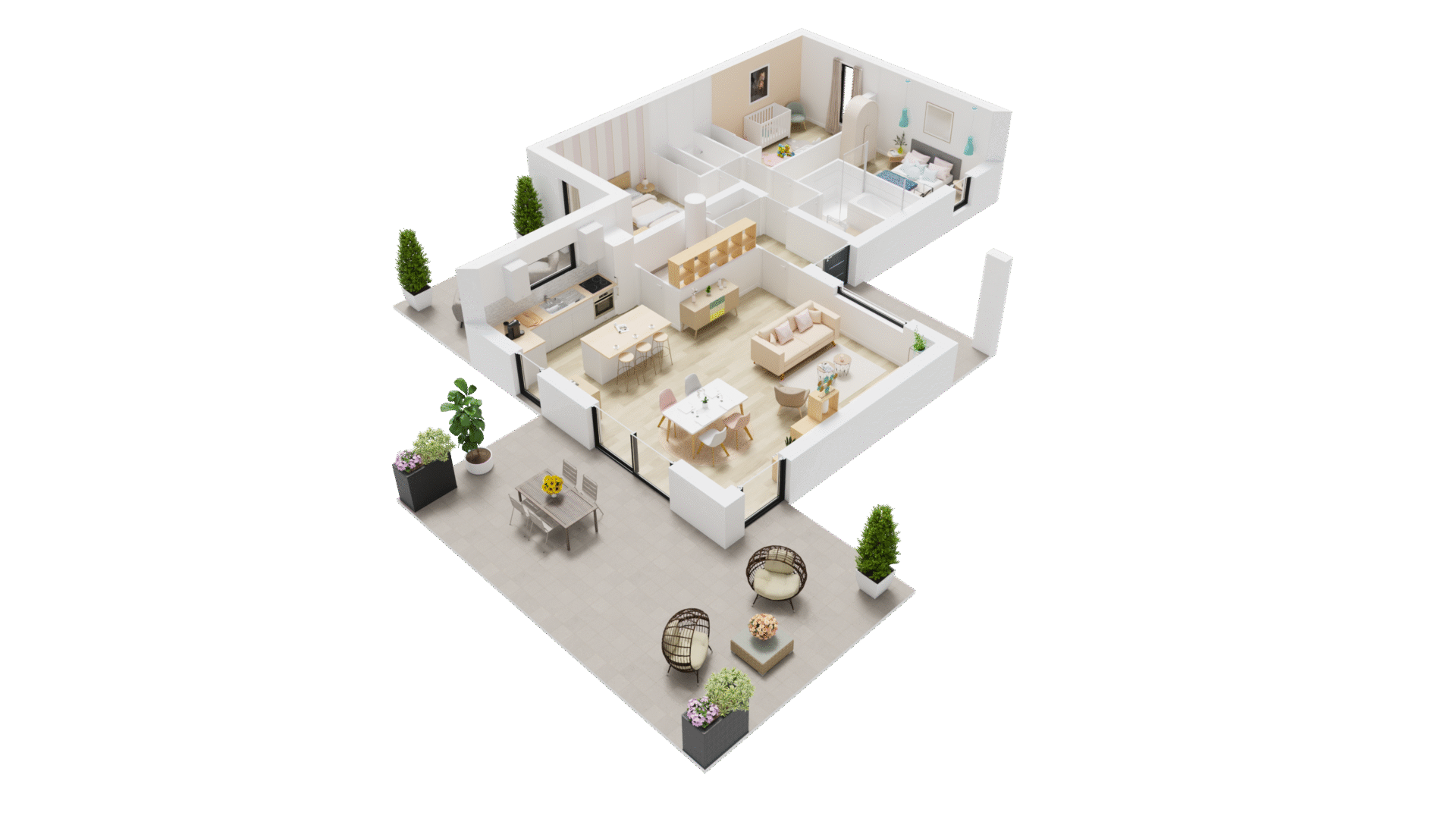 Le modèle présenté est une maison de plain-pied, fonctionnelle, lumineuse et adaptée à toutes les étapes de la vie.